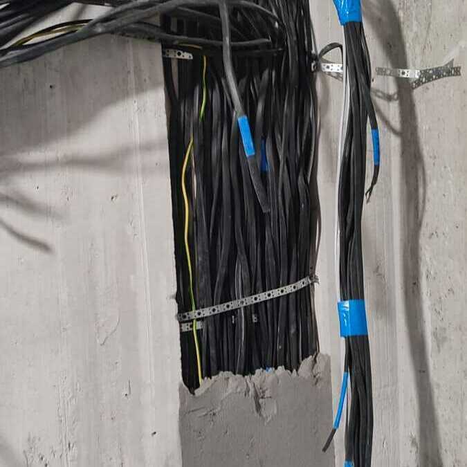 Мы работаем по нормативам СНиП, применяя силовые кабеля сделанные строго по ГОСТу с негорючей изоляцией ВВГ Пнг, уложенные в специальной самозатухающей гофре.