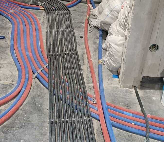 Мы рекомендуем трубы из сшитого полиэтилена итальянской фирмы Stout. Преимущества данного вида трубы в том, что эти трубы не имеют сварных швов, а так же соединений с стенах, что увеличивает надежность и уменьшает риски протечки да и человеческий фактор при монтаже. Соединение труб делается только в стояке и на самой водорозетке, то есть в местах где всегда есть доступ для работы. Соединение труб и водорозеток делается с помощью пресфитингов, такое соединение является одним из самых надежных и современных. Так же это система соединений хороша тем что нет заужения в соединениях, как например в полипропилене.