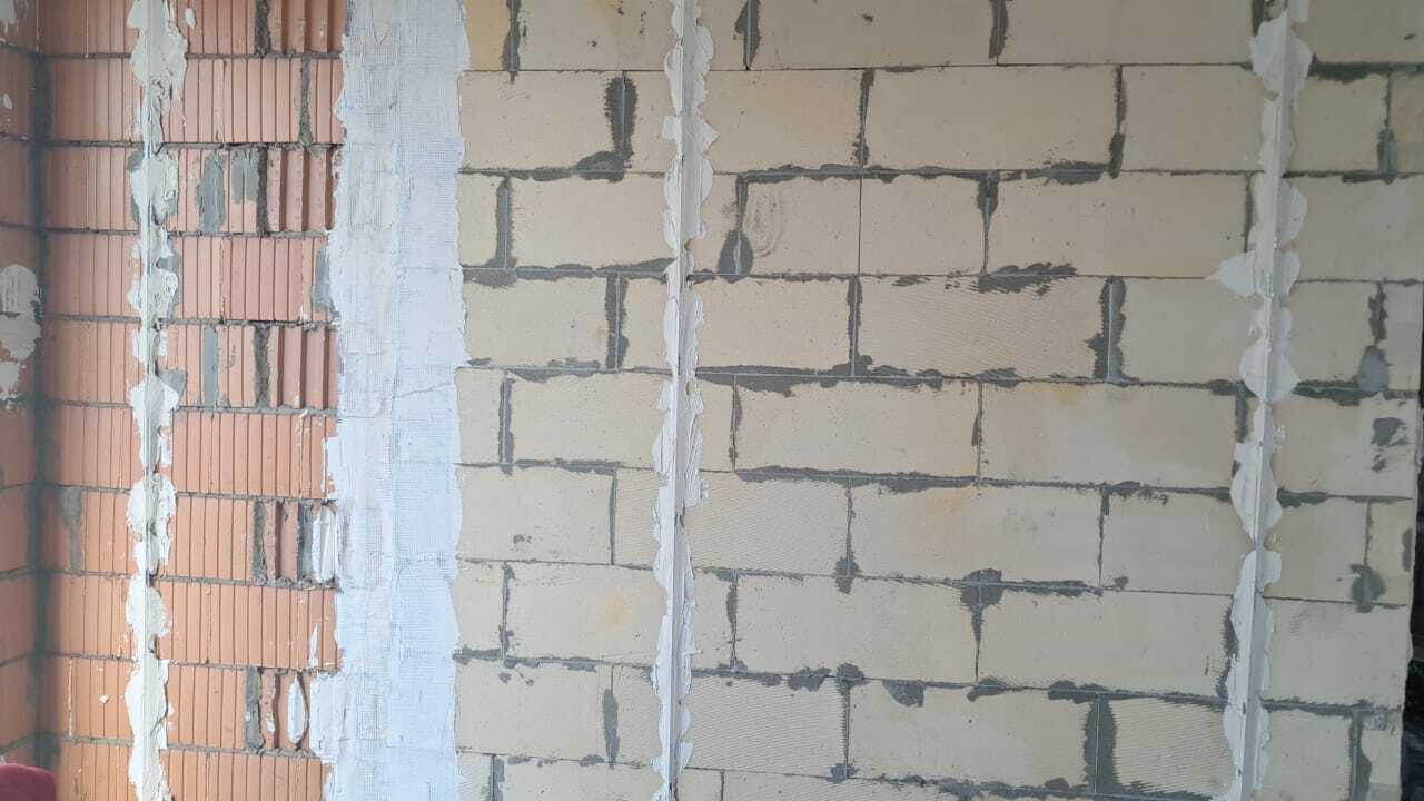 Для получения идеально ровных стен мы используем в качестве маяков струны, преимущество струн в том, что они при натягивании исключает волнистость стены. Сами же маяки(струны) выставляются по лазеру, мы используем уровни фирмы ADA CUBE 3D, профессиональный инструмент исключает погрешность при работе.